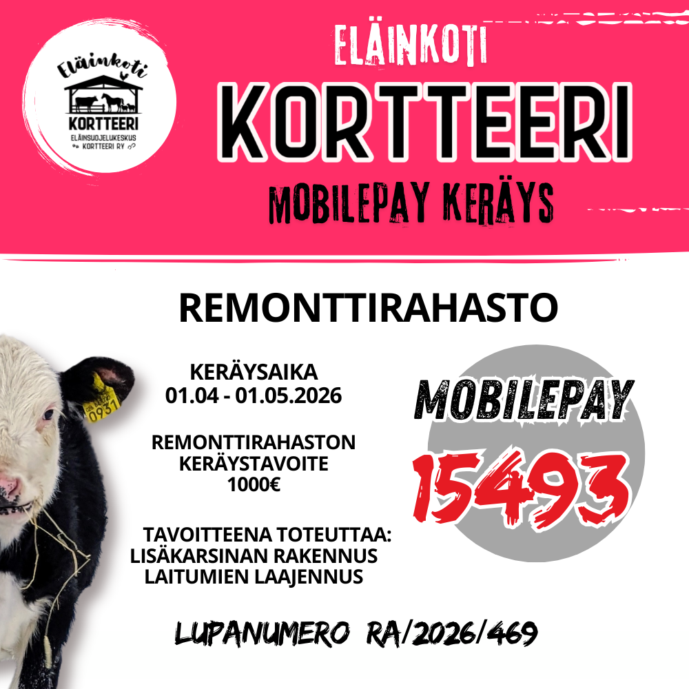 Eläinsuojelukeskus Kortteeri ry kevään varainkeräys kohdistuu remppahommiin. Tallissa on olemassa varaus vielä yhdelle lisäkarsinalle. Tämän karsinan käyttöön saaminen mahdollistaisi lisäämään Kortteerin kapasiteettia ja tarjoamaan kodin vaikkapa vielä yhdelle kaviokkaalle.